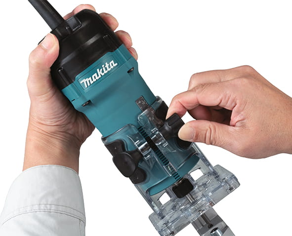 - Bezstopniowa, precyzyjna regulacja głębokości frezowania - mechanizm zębatkowy